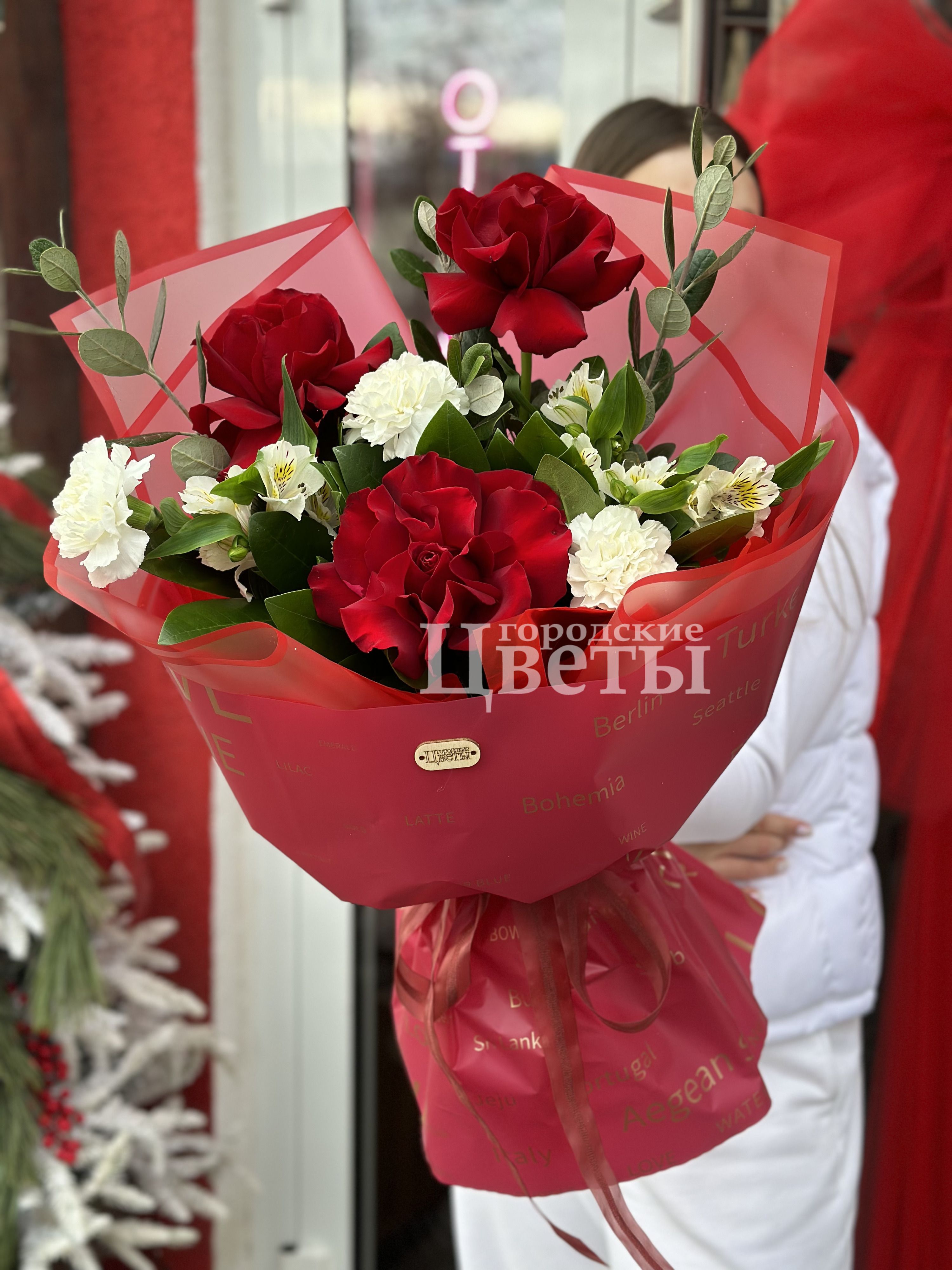 - роза красная Эквадор, 3 шт.